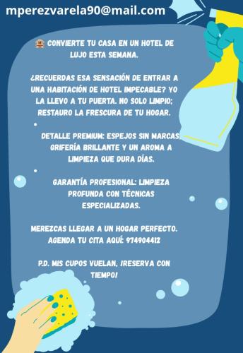 Hay un perro que ensucia muy poco pero es muy amoroso, mi pareja y yo trajabamos muchas horas por lo que no nos alcanza para hacer el aseo. Somos nosotros 2 y nuestro perro. Tengo materiales y utensilios de limpieza que facilitan mucho el trabajo