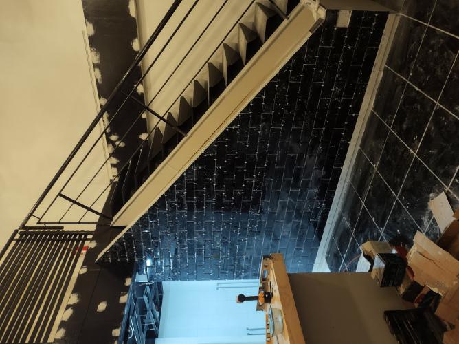 El espacio a trabajar son 13.4 m2, en una pared del edificio en el 3er piso. Contará con andamio de 2 cuerpos mas jaula con ruedas y soportes antivuelco. Se tienen aproximadamente 10 a 12 días disponibles para realizar el trabajo. El revestimiento que hay que instalar es de ladrillo, y finalmente fraguar el trabajo.