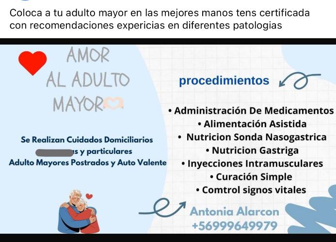 - Cuidadora de Adulto Mayor Puertas Adentro en La Florida