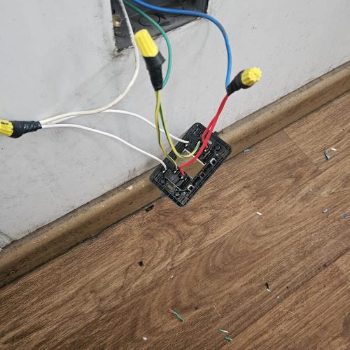 El trabajo completo se reduce a 2 metros cuadrados y están los cables a la vista salvo interruptores - Uno simple y otro doble con cajas chuqui - Se trata de instalar un interruptor triple que junte los puntos de los dos interruptores vigentes.