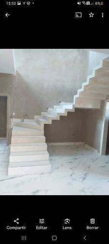 Son 14 peldaños de escala. Más 3 mts2 de descanso. Entrepiso. Total piso flotante 8 mts2.