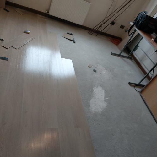 Es una sala de atención medica y baño. La necesidad del cambio es debido a que uhbo una inundación y el piso que estaba puesto se levantó