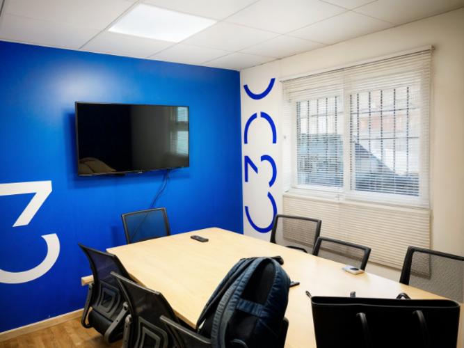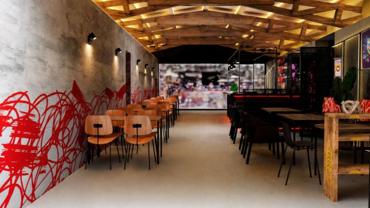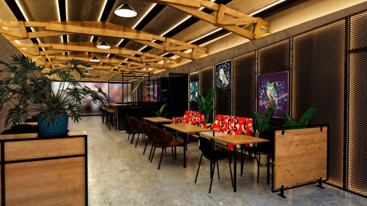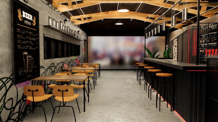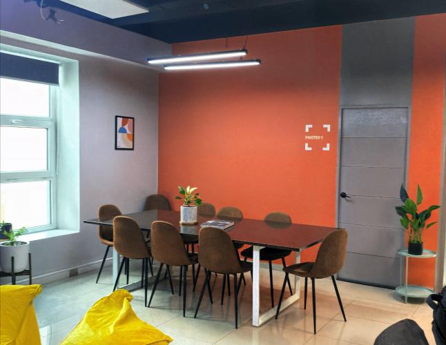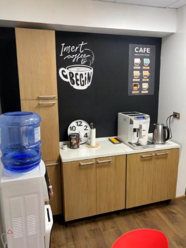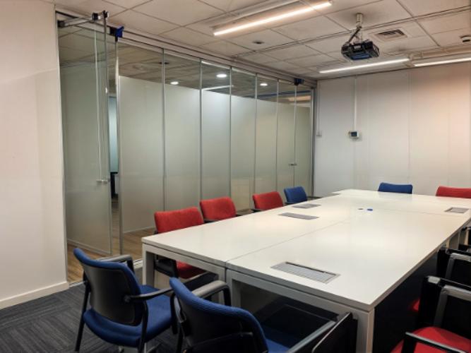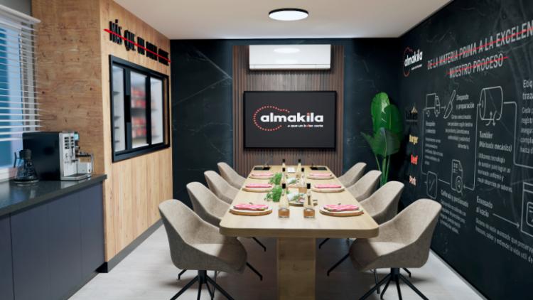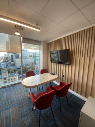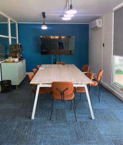 Es un mesón forrado en su cara anterior y cubierta con corian de aproximadamente 5,6ml de largo y ancho 1,6 m. , superficie total de 9 m2