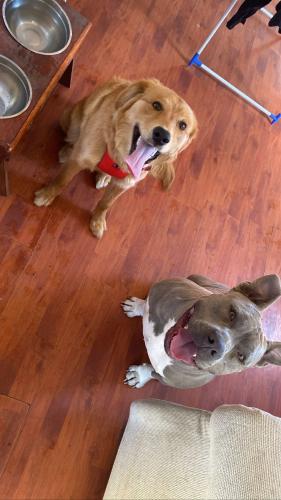 Rufus es regalón, de dentro de cada. Con la familia , conocidos y niños es cariñoso y juguetón. El problema es que le ladra a los desconocidos y al resto de los perros que ve. Comparte algunos días de la semana con el perro de mi hija, inicialmente jugaba bien, pero ahora esta muy molestoso y peleador con el. Nunca lo he sacado con correa.