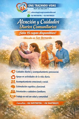 Son 2 personas mayores, un hombre de 95 años con una demencia compensada, semivalente (camina, se viste y come solo), necesita apoyo en higiene diaria y toma de medicamentos; y una mujer de 88 años autovalente pero con enfermedad (cáncer) que día a día va empeorando. Necesitan compañía, apoyo en toma de medicamentos, preparación de alimentos, mantención general del hogar, acompañamiento.